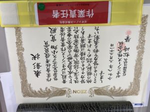 日本ゼオン水島工場定修にて、作業責任者優良賞を受賞しました。