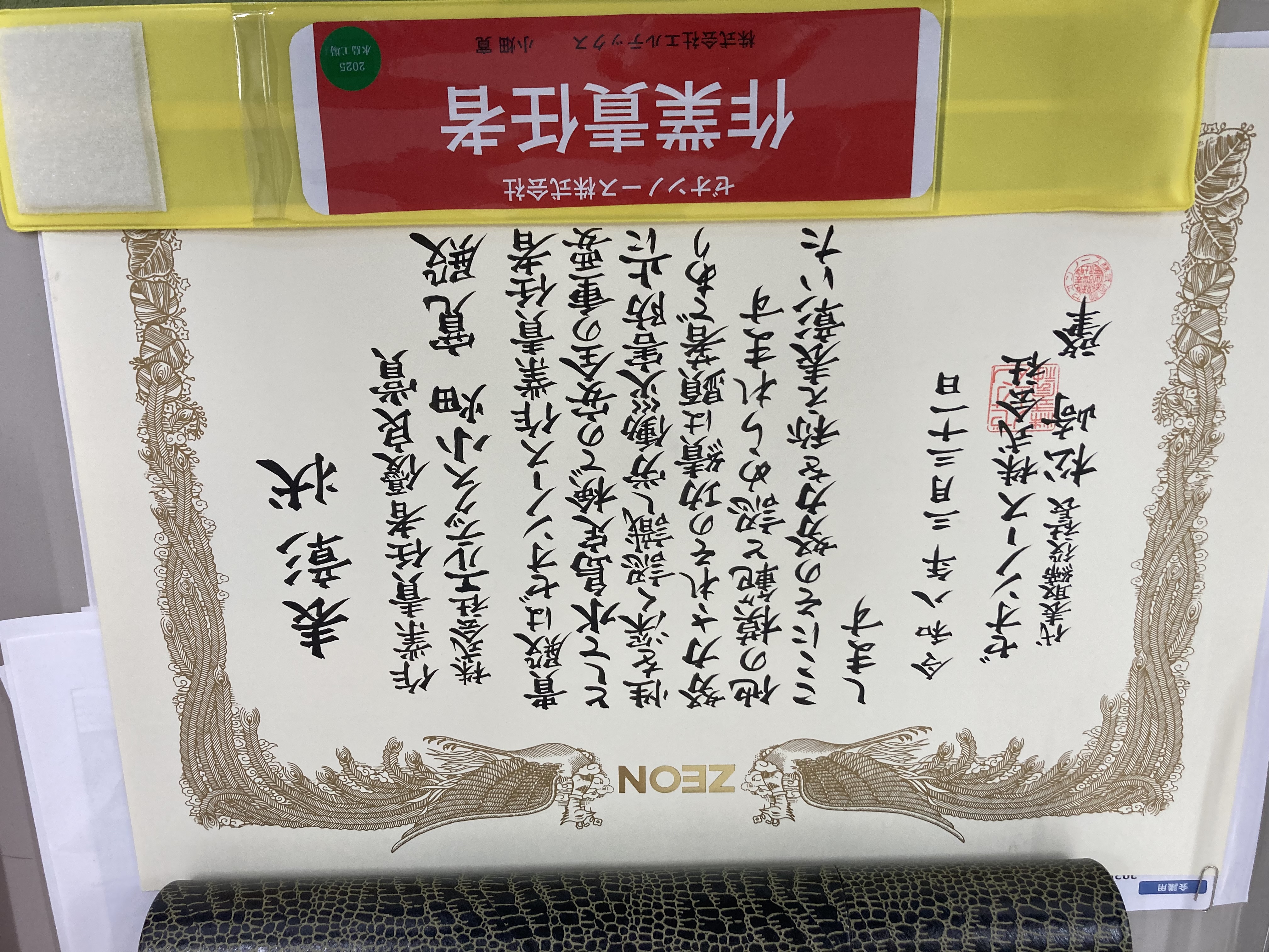 ゼオンノース株式会社 様より作業責任者優良賞を受賞しました
